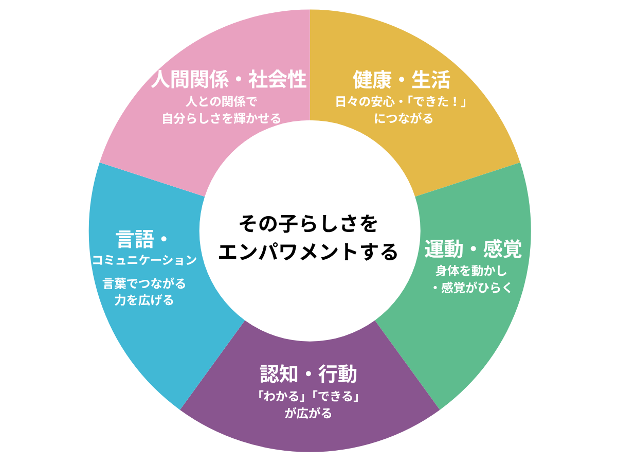 5領域は「評価の枠」ではなく、「育ちの窓」として その子らしさをエンパワメントする道しるべにしています。