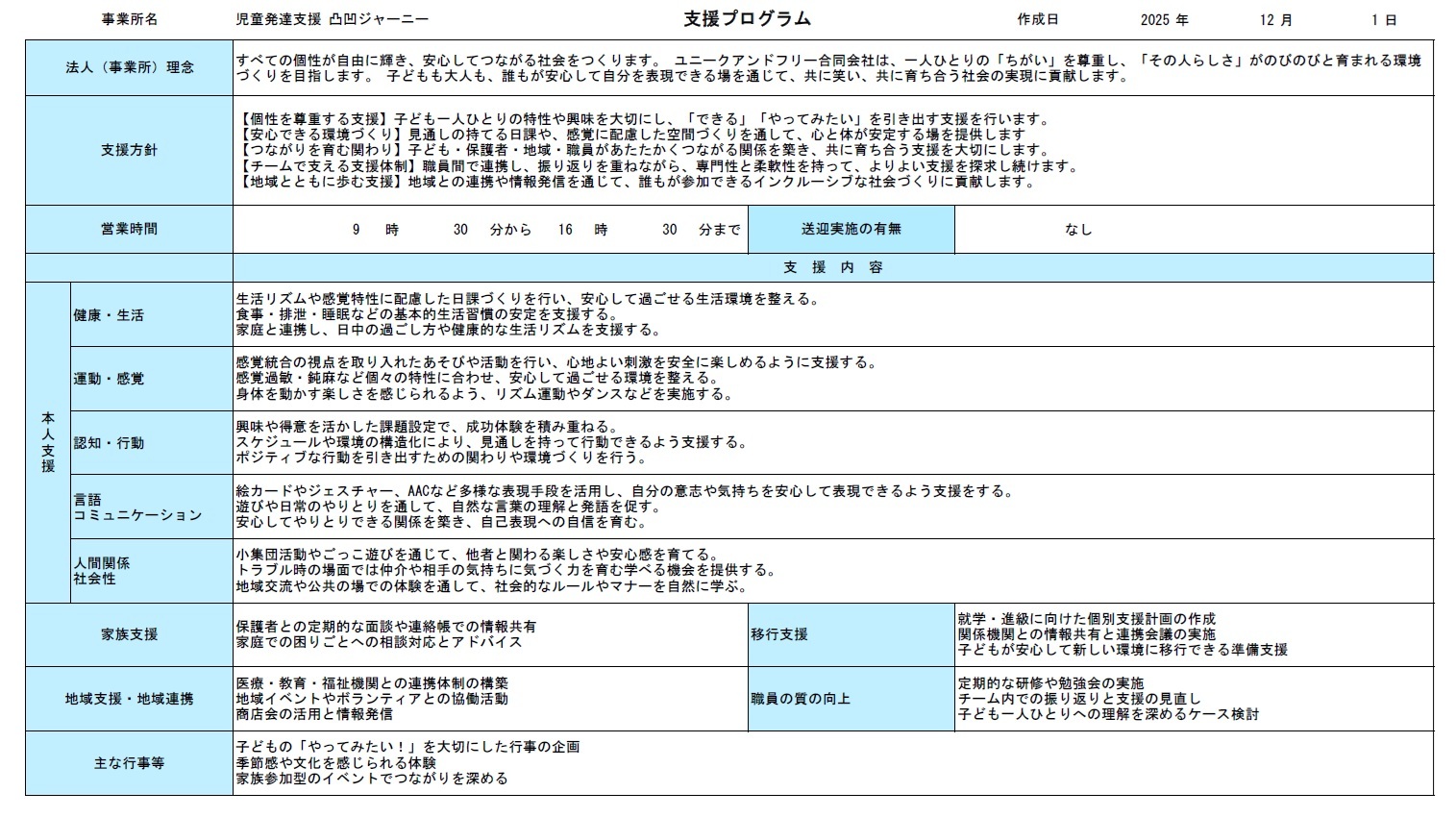 (ごっこ遊び・SST・地域との関わりなど)